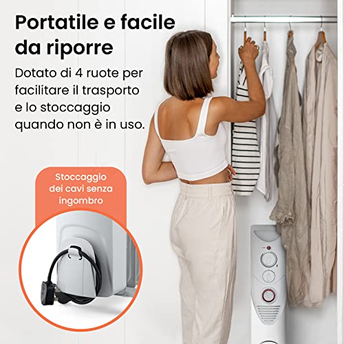 Riscaldamento potente: Radiatore ad olio ad alta potenza da 2500 W con 11 alette di riscaldamento e timer 24 ore
