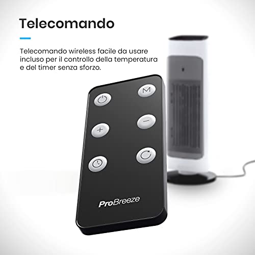 Pro Breeze Termoventilatore a Torre in Ceramica 2000W. Con Display LED Digitale, Telecomando, Oscillazione Automatica, Termostato Integrato, 2 Impostazioni di Calore, Modalità Eco e Solo Ventola