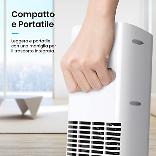 Potente riscaldamento regolabile: Progettato con elementi ceramici a riscaldamento rapido extra-grandi e due potenti ventole che forniscono un riscaldamento rapido ed efficiente. Basta selezionare una temperatura desiderata da 15°C a 30°C e il riscaldatore elettrico raggiungerà e manterrà automaticamente questa temperatura.