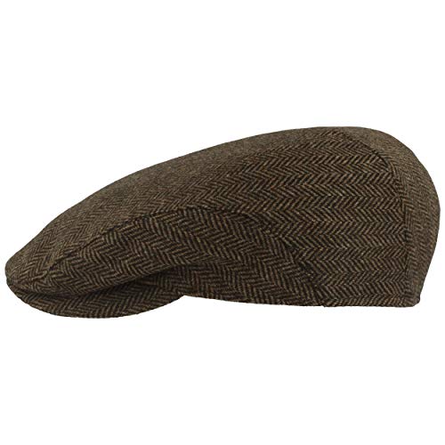 Breiter Berretto Invernale da Uomo con Paraorecchie Flatcap Berretto Piato con Visiera Basco Scozzese 100% Lana Protezione per Le Orecchie - Pieghevole Delicato sulla Pelle e Comodo Marrone 60