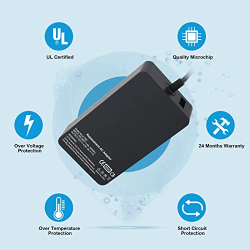 Brekiya 65W Adattatore di Alimentazione per Caricabatterie per Laptop 15V 4A Compatibile con Microsoft Surface Pro 3 Pro 4 Pro 5 Pro 6 Pro 7 Pro X per Tablet Surface 1706 1625 1735 1736