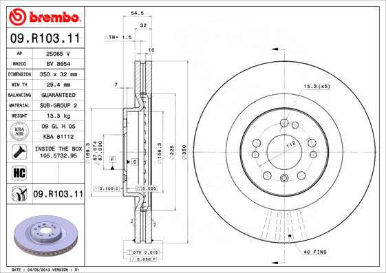 BREMBO Disco freno ventilazione interna 09.R103.11;