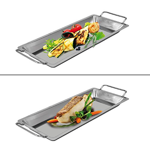 MULTIFUNZIONE - Il piatto di raccolta raccoglie il grasso e allo stesso tempo può essere usato come piatto di portata. Adatto anche per grigliare verdure e frutti di mare.