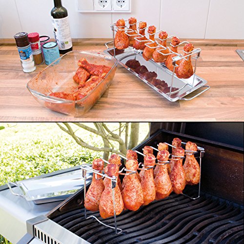 Bremermann - Accessorio per cosce di pollo per grigliare 12 cosce o ali di pollo, in acciaio inox, richiudibile (incluso il piatto di raccolta)