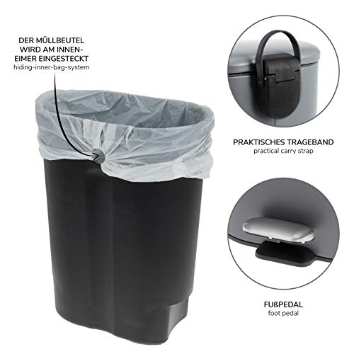 Bremermann BARBENA - Pattumiera a pedale da 6 litri, in acciaio INOX, anti-impronte, SoftClose, colore: grigio