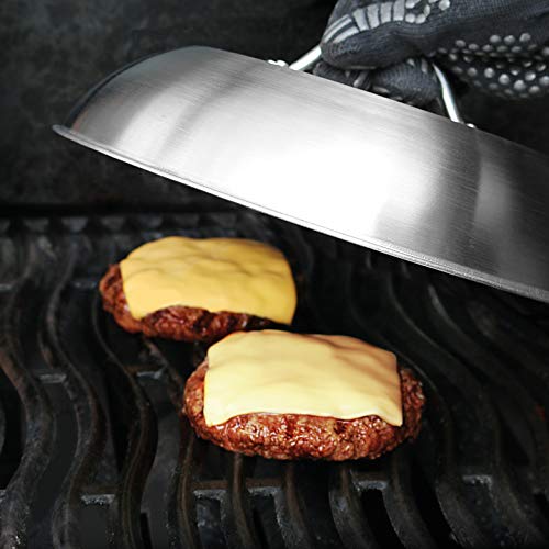 Molteplici possibilità - Lo strumento ideale per tutti gli hamburger Ideale per gratificare bistecche tritate con formaggio - Multifunzione: può essere utilizzato come cappa da cucina, Teppanyaki, per tenere al caldo, coperchio contro mosche e sporco, coperchio per padelle o forno. Prepara verdure al vapore, uova fritte, piatti della padella, ecc.