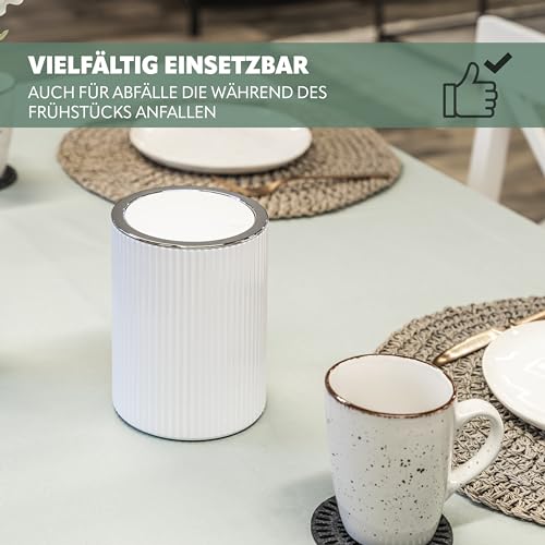 Bremermann GAVELLO - Pattumiera per cosmetici con coperchio basculante, secchiello per bagno con decorazione scanalata, in plastica, da 5,5 litri (colore: bianco)