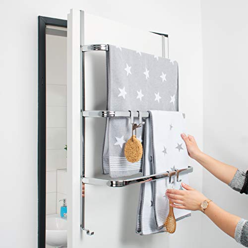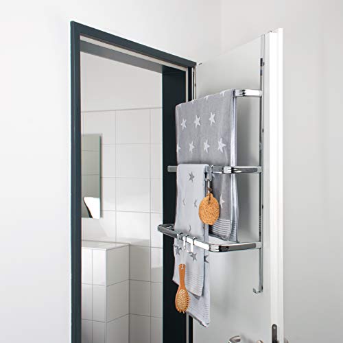 Bremermann Scaffale da Appendere alla Porta, portasciugamano da Porta con 4 pratici Ganci (Argento)