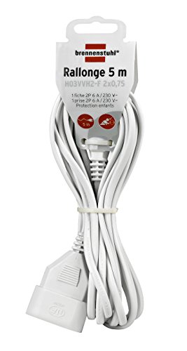 Brennenstuhl 1161671 - Prolunga elettrica, 5 m, H03VVH2-F, 2 x 0,75, colore bianco