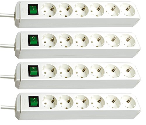 Brennenstuhl Eco-Line, Ciabatta a 6 prese (con interruttore e cavo da 1,5 m, particolarmente a risparmio energetico, set da 4 pezzi, colore: Bianco
