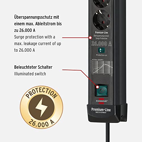 Brennenstuhl Premium-Line - Ciabatta multipla a 6 vie con protezione da sovratensioni fino a 26.000 A (presa multipla con cavo da 1,8 m e interruttore Made in Germany) nero