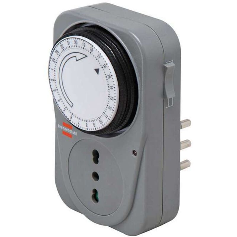 Presa bivalente con timer meccanico Brennenstuhl 1506455 Presa bivalente con timer meccanico ideale per programmare l'utilizzo di elettrodomestici ed altro. Dotata di 96 orari di accensione/spegnimento al giorno, protezione per bambini, visualizzazione a LED del funzionamento ed intervallo minimo di commutazione da 15 minuti. Caratteristiche Programmatore con timer economico con programma di 24 ore. 96 orari di accensione/spegnimento al giorno. Intervallo minimo di commutazione: 15 minuti. Con visualizzazione a LED del funzionamento. Presa con protezione per bambini. Tipo: IT
