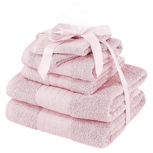 Brentfords Set di asciugamani super morbidi di lusso, 100% cotone, 6 pezzi da bagno, Rosa cipria, 2 Asciugamani, 2 Viso, 2 Asciugamani, 500 gms
