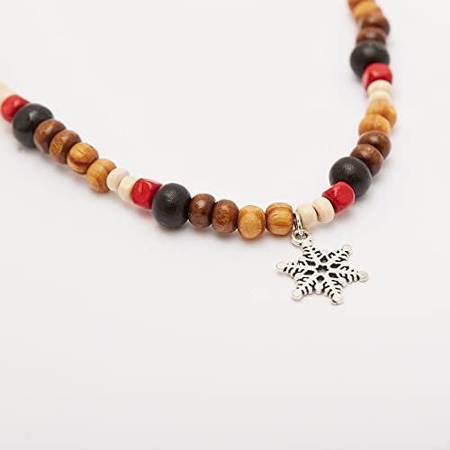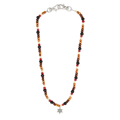 CATENA UOMO: Questa catena in metallo e pietre a sfere miste di colore bianco, rosse,nero, beige e marrone.