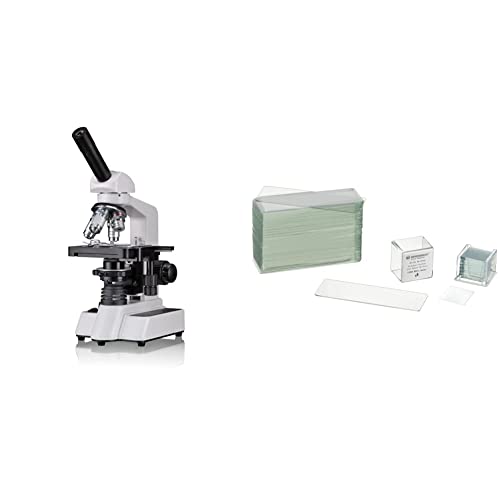 Bresser 5102000 - Erudit, microscopio DLX 40x-1000x & Set vetrini (50) e coprivetrini (coprioggetto) 18x18mm (100) per microscopio