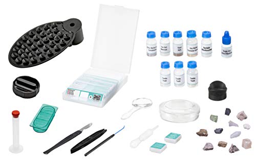 Contenuto della confezione: microscopio, supporto per smartphone, 20 preparati permanenti con codice QR, 7 supporti vuoti, 8 flaconi con campioni, 1 flacone vuoto, scatola per oggetto, lente d'ingrandimento, ago per la preparazione della carta, pipetta, pinzette, scalpello, petrolio, 8 bicchieri e 8 etichette adesive, preparato a ali di farfalla, 12 pietre, conchiglia oculare per portatori di occhiali. MicroCut, MicroCut, MicroCImpianto di infusione, 2 batterie AA