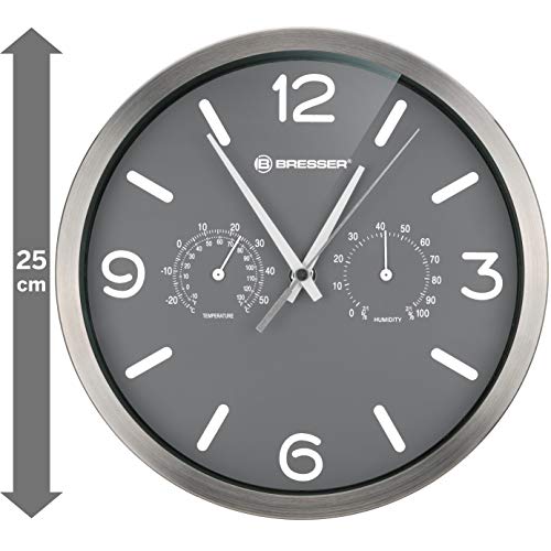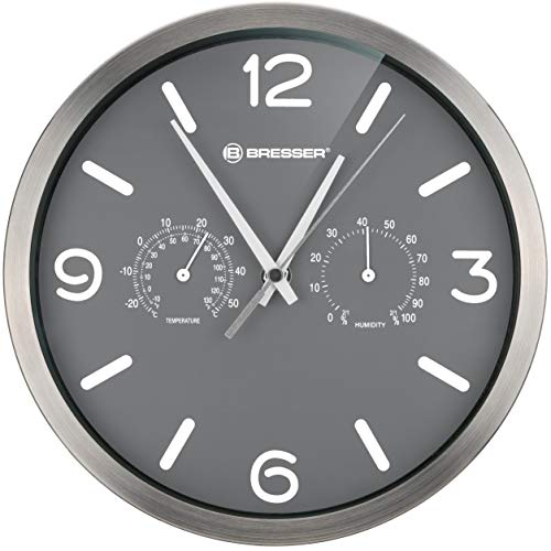 BRESSER MyTime Orologio da parete DCF termoigrometro 25 cm bigio