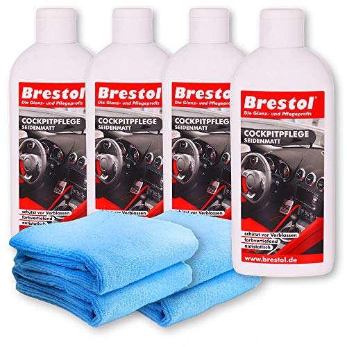 Brestol Cura in plastica per Auto, Set 2 (4 x 250 ml per la Cura della plastica + 4 Panni universali) - Cura degli Interni in Gomma e Vinile