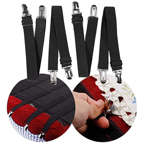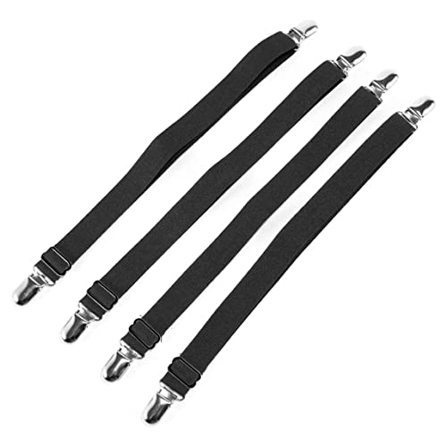 Bretelle Elasticizzate Regolabili per Angoli Lenzuola e Coprimaterassi (4 Pezzi, 60-200cm), Adatte per Letto o Divano, Nero