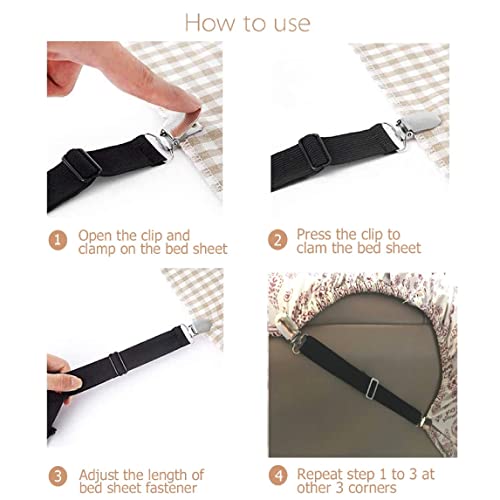 ❥Un set di 4 fogli regolabili si stringe: le strette regolabili sono adatte per lenzuola, tovaglie, ecc. Per evitare che le lenzuola siano disordinate e scivolose.