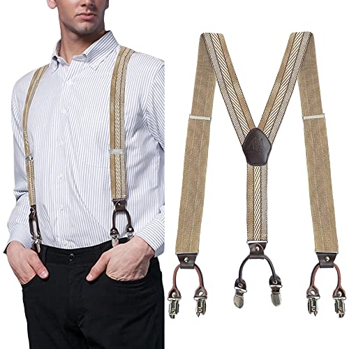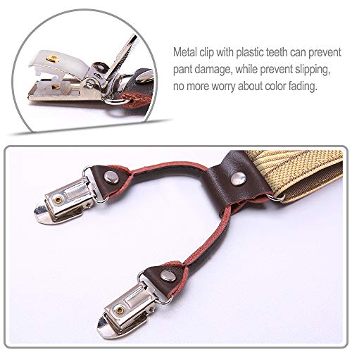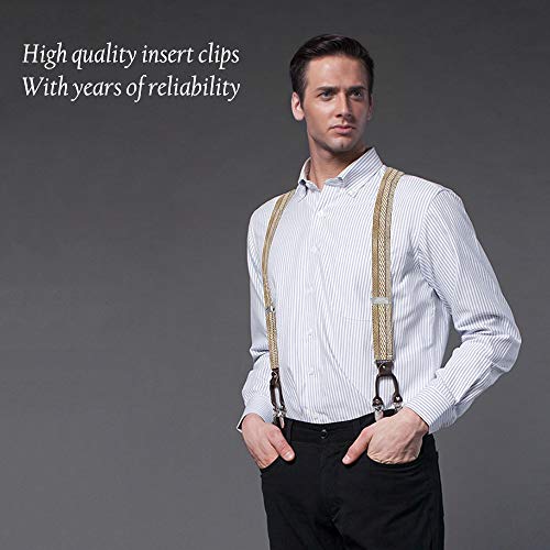 Bretelle da uomo con forti 6 clip in metallo, bretelle per pantaloni da uomo, resistenti, larghe 35 mm, con bretelle elastiche a croce regolabili con chiusura a Y sul retro in vera pelle