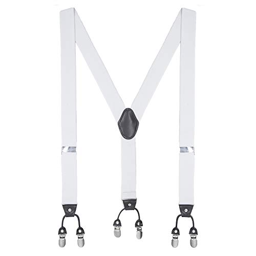 MLM Uomo Bretelle Bretelle Per Uomo Heavy Duty 6 Clip Ampie Tracolle Elasticizzate 1.4"Y Shape Back Resistenti Clip in Metallo (Garanzia di un anno) (Bianco)
