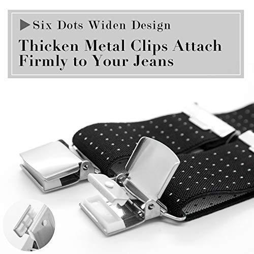 MLM Uomo Bretelle Bretelle Per Uomo Heavy Duty 4 Clip Ampie Tracolle Elasticizzate X 1.4 "X Shape Back Resistenti Clip in Metallo (Garanzia di un anno) (Punto d'onda bianco-nero)