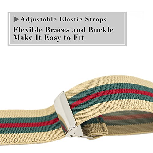 MLM Uomo Bretelle Bretelle Per Uomo Heavy Duty 6 Clip Ampie Tracolle Elasticizzate 1.4"Y Shape Back Resistenti Clip in Metallo (Garanzia di un anno) (Strisce rosso-verde)