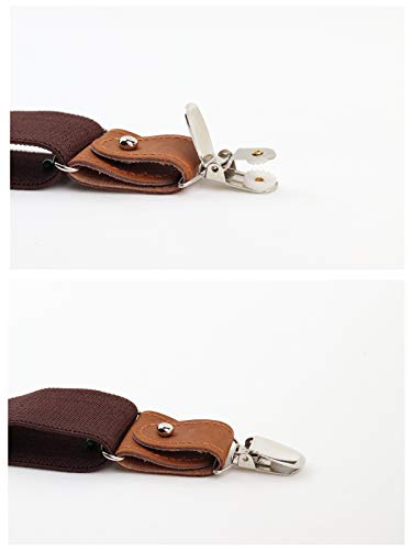 Set di bretelle e papillon da uomo, 2 WAY TO Wear 6 asole in pelle 3 fermagli Forma a Y 3,5 cm di larghezza bretelle estese per statura 160-200cm - Tinta unita Marrone scuro