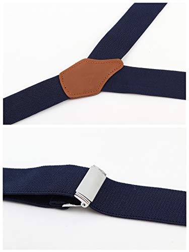 Set di bretelle e papillon da uomo, 2 WAY TO Wear 6 asole in pelle 3 fermagli Forma a Y 3,5 cm di larghezza bretelle estese per statura 160-200cm - Tinta unita Blu navy