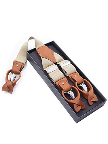 Set di bretelle e papillon da uomo, 2 WAY TO Wear 6 asole in pelle 3 fermagli Forma a Y 3,5 cm di larghezza bretelle estese per statura 160-200cm - Tinta unita Beige