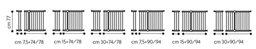 Dimensione: 90-94, acquistabili a parte prolunghe di 7.5 - 15 o 30 cm per adattarla a tutte le aperture