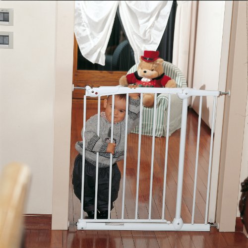 Comoda barriera di sicurezza da applicare a porte o scale per impedire al bimbo di esporsi al pericolo in metallo verniciato con materiali atossici