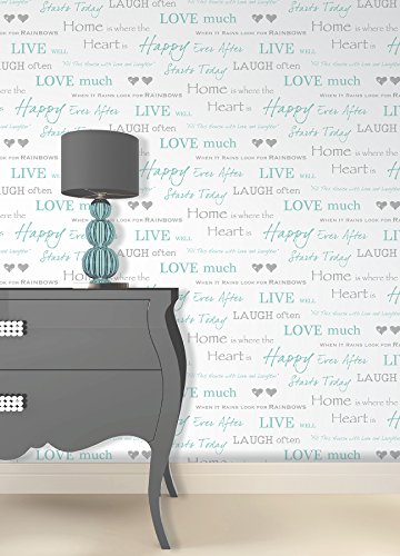 Brewster FD40428 - Carta da parati con motivo: parole, colore ottanio/argento (lingua inglese)