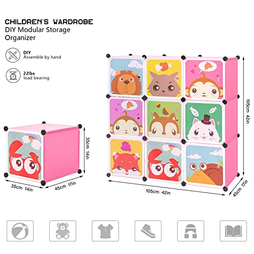 BRIAN & DANY Armadio Modulare Bambini, Portatile Guardaroba, Armadietto in Moduli Plastici, Rosa, 110 x 47 x 110 cm