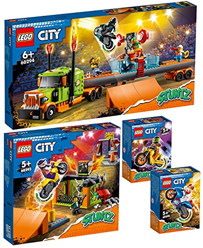 BRICKCOMPLETE Lego City - Set da 4 pezzi 60293 Stunt-Park, 60294 Stuntshow-Truck, 60297 Power-Stunt Bike 60298