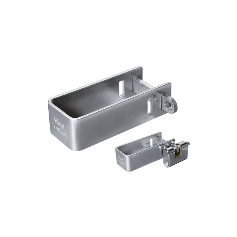 Occhioli cravatte Viro 30067 Accessori di chiusura per lucchetti, di facile montaggio, per applicazioni su legno, ferro, muro, ecc. Particolarmente indicati per l'abbinamento a lucchetti corazzati Fai by Viro, "Panzer" e "Monolith". In acciaio cementato, temprato e zincato Art. 300676 - 50x96/116 mm.