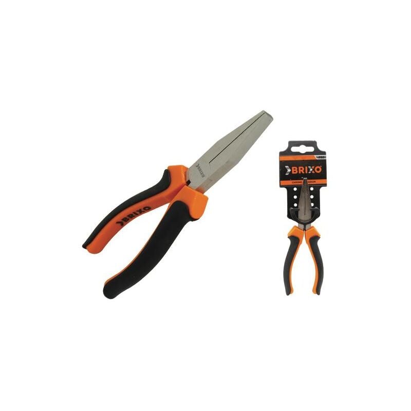 Pinze Brixo becchi piatti retti Acciaio forgiato di alta qualità (C 50), testa piatta con finitura fosfatata, manici soft-grip con impugnattura isolante in bicomponente. Lunghezza 150 mm.