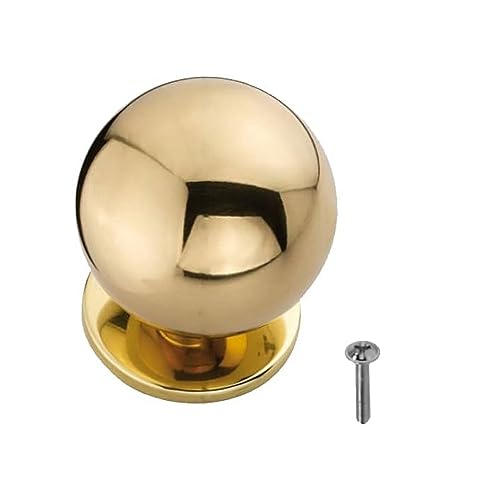 Bricoleva.it Pomello Singolo Rotondo per Mobili Porte Armadi Cassetti Comodini Ante - Pomolo Tondo per Mobili - Pomello in Zama Color Ottone Lucido - 25x32 mm