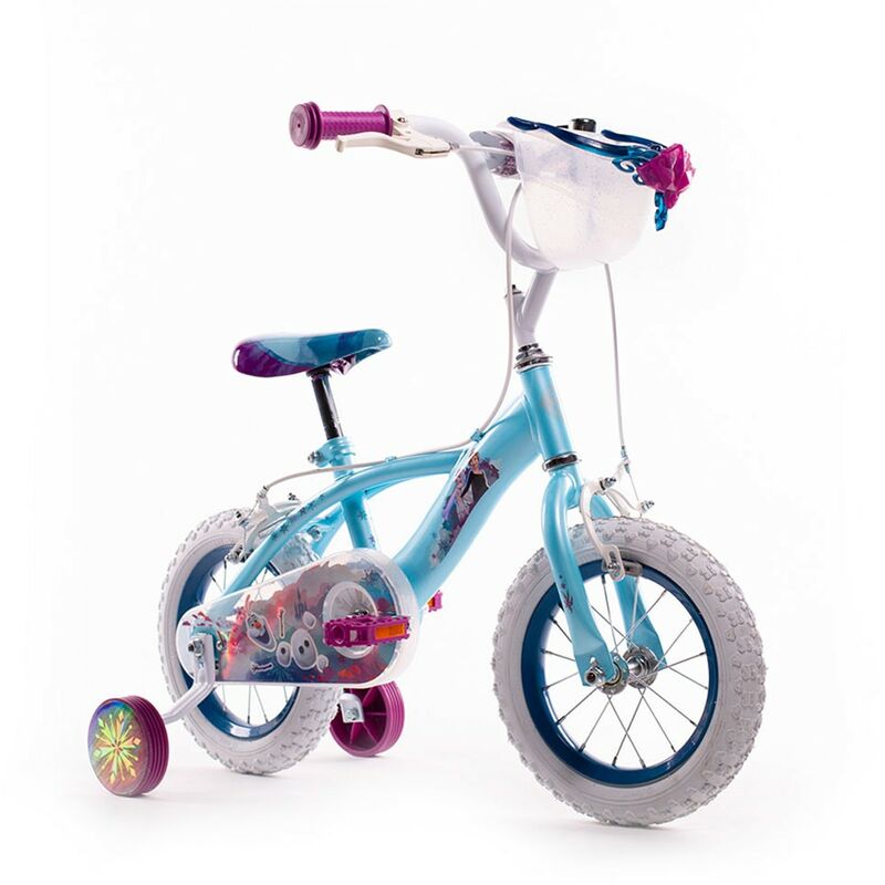 Bicicletta per bambina Frozen colore celeste, ruota 12 pollici con cestino anteriore, rotelle stabilizzatrici removibili, freno anteriore e posteriore. Sistema di movimento su sfera caratterizzato dal gruppo pedali che appoggiato su una coppia di cuscinetti a sfera che rende la pedalata più fluida e garantisce una maggior durata nel tempo. Dotata di campanello, telaio e forcella in hi-ten, cerchi in alluminio e ruote tassellate con camera d'aria. Bicicletta bimba con regolazione altezza del sellino, è possibile alzarlo o abbassarlo in base all'altezza della bambina. Studiata per le più piccole per far apprendere loro in modo semplice ad andare in bicicletta. Caratteristiche Tecniche: Misura ruote 12 Cerchi in alluminio Ruote libere 1 velocità tassellate, con camera d'aria Stabilizzatori removibili inclusi Piega manubrio hi-ten Reggisella hi-ten regolabile Telaio e forcella in hi-ten Freno Caliper - Leva freno nylon Dimensioni confezione (LxPxH): 74x40x19 cm - Peso: 9.8 kg Età
