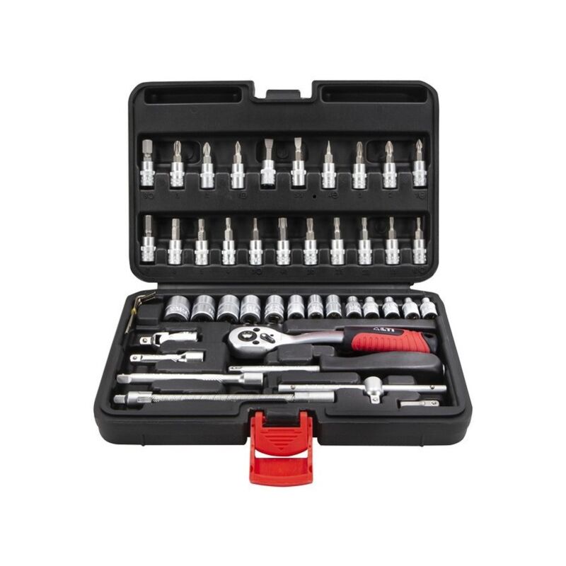 Set chiavi in acciaio al cromo vanadio per un ottima resistenza con valigetta porta attrezzi in polipropilene. il set è composto dalle seguenti chiavi: 13 bussole esagonali varie misure da 4-14 mm attacco da 1/44 chiavi maschi esagonali 1,27-2,5 mm21 inserti: PH (1-2-3), PZ (1-2-3), Taglio (4-5, 5-7), Torx (10-40) Esagono (3-8) 1 snodo attacco 1/41 prolunga flessibile da 150 mm attacco 1/41 prolunga da 50 mm attacco 1/4 1 prolunga da 100 mm attacco 1/41 cricchetto da 1/41 barra a T con raccordo 1 adattatore 1 giravite porta inserti Valigetta ideale per professionisti e hobbisti per i piccoli lavori fai da te.