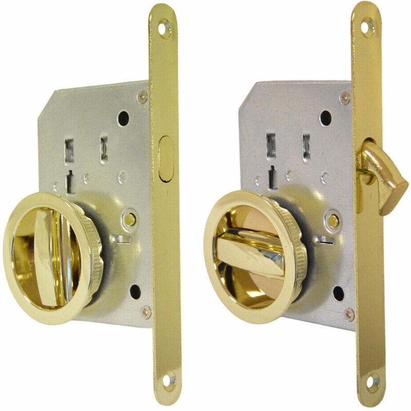 Kit Tondo per porte scorrevole Materiale Zama Finitura Oro Lucido Completo di serratura entrata 50 mm