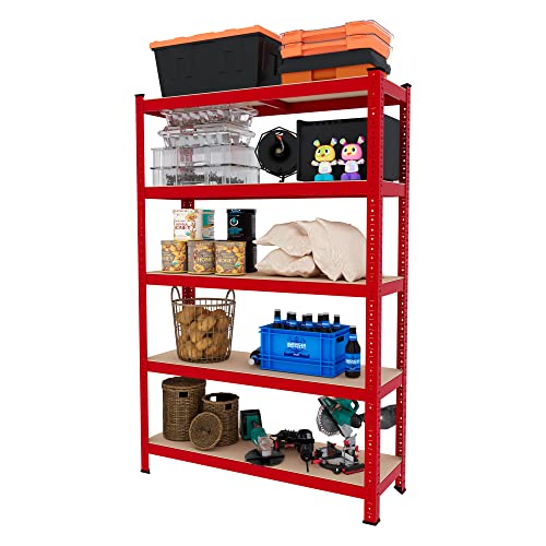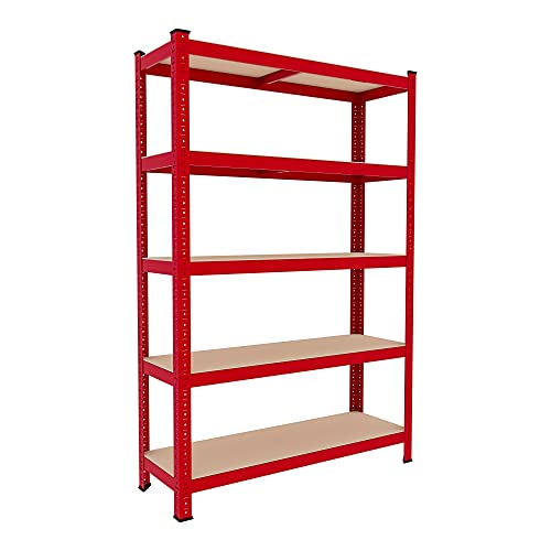 Bricozone Scaffale In MDF E Metallo Con 5 Ripiani Regolabili In Altezza Mensole Alta Portata Fino a 875 kg Garage Officina Cantina Capannone Magazzino Design Modulare 180 x 120 x 40 cm (Red)