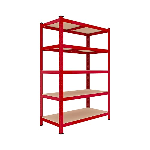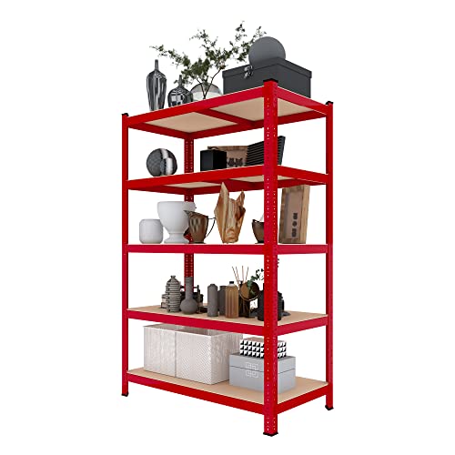 Bricozone Scaffale In MDF E Metallo Con 5 Ripiani Regolabili In Altezza Mensole Alta Portata Fino a 875 kg Garage Officina Cantina Capannone Magazzino Design Modulare 180 x 90 x 60 cm (Red)