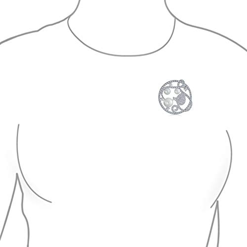 Materiale: Ottone placcato rodiato, Zirconia cubica, Misura perla simulata: 1,5 pollici L x 1,5 pollici W, peso: 9,9 grammi, perle simulate semi-montate in lucentezza alta. Spilla in stile cerchio con chiusura incernierata