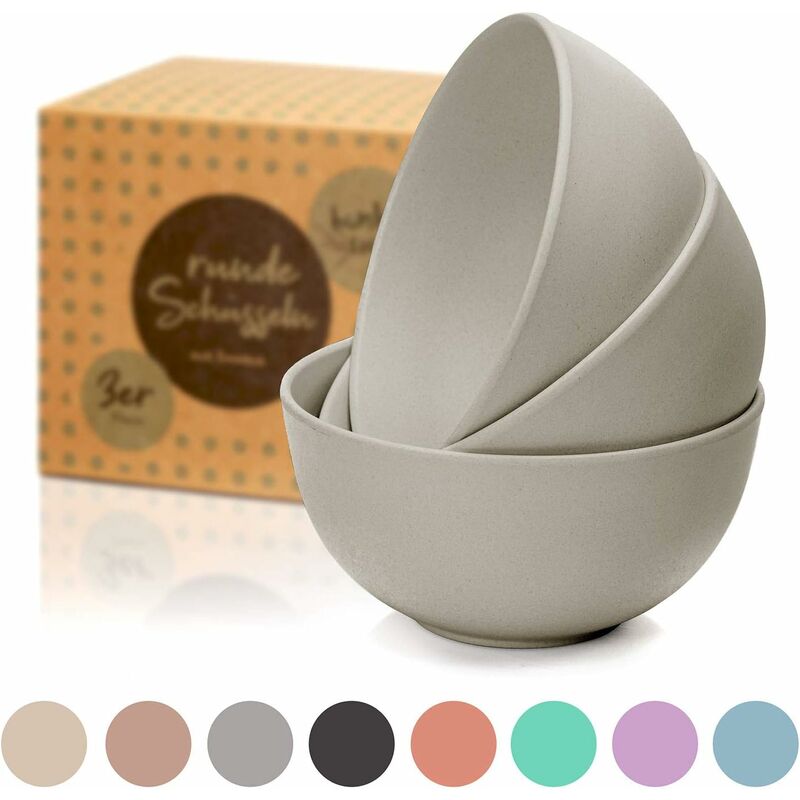 CIOTOLA PER CIBO IN BAMB (14,5 cm Ø e 7 cm di altezza) - bella e profonda in modo da non rovesciare nulla. Ottimo per la colazione e per gli spuntini intermedi. Zuppe, insalate, dessert, popcorn, pasta e piatti wok si sentono come a casa nella ciotola. PESO LEGGERO: le ciotole sono molto facili da trasportare, quindi puoi portarle con te nella tua prossima avventura all'aria aperta! ROBUSTO E LAVABILE IN LAVASTOVIGLIE - apprezzerai questi accessori da cucina per molti anni a venire. Resiste facilmente allo stress quotidiano, agli incidenti personali e alle temperature fino a 70°C. ROTONDE E COLORATE - Porta le ciotole con il design alla moda in una confezione da 3 nella natura a casa! REALIZZATE CON IL 70% DI MATERIE PRIME ECOLOGICHE - le ciotole sono realizzate con fibre di bambù, amido di mais e resina melamminica. Sono privi di BPA e completamente vegani. Descrizioni dei prodotti Per interni ed esterni Una ciotola per tutte le occasioni Le nostre ciotole sostituiscono le stoviglie