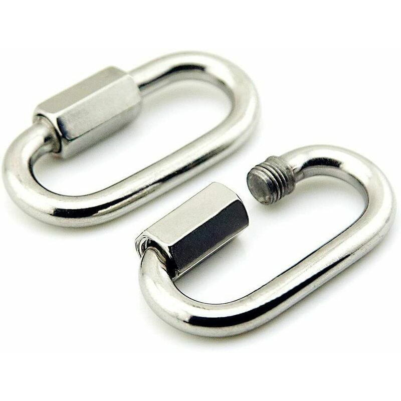 DESIGN DOLCE: il cestello del moschettone riduce le platine del froglyte. Il naso con chiusura a chiave impedisce che si impiglino. MULTIFUNZIONALE: puoi usarlo per zaino, portachiavi, catene, corde, campeggio, escursionismo, pesca, animali domestici, attrezzatura per interni, accessori fai-da-te. ANTIRUGGINE: Anticorrosivo passivato per una maggiore resistenza alla corrosione. CONVENIENTE: Ruotare il filo in senso orario per aprire e in senso antiorario per chiudere. MAGGIORI INFORMAZIONI: Carico limite di lavoro: 350 kg, M8-8mm / 0,32' è per il diametro del mandrino Numero di pezzi consegnati: 2 Benvenuto per incontrarci