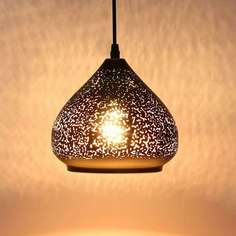 Specifiche Diametro ombrello: 30 cm Altezza ombrello: 15 cm Diametro lunghezza fondo: 12 cm < p>Lunghezza guinzaglio regolabile: 100 cm Peso: 1,1 kg Tipo paralume: Ferro p> Colore: nero e oro Versione leggera: E27 Potenza: 60 W max.