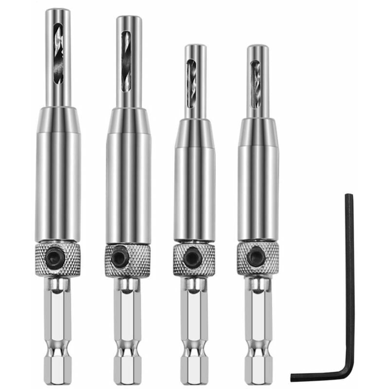 Preciso posizionamento, non si muove, il legno viene scaricato automaticamente dalla sommità dei fori su entrambi i lati, nessuna foratura incastrata. Preciso foro guida autocentrante per cerniere e piastre di bloccaggio. p> Per l'uso su legno e tavole. Può essere perforato in porte, finestre, armadi e altre apparecchiature secondo necessità per installare i connettori. Facilmente rimovibile per la pulizia e la sostituzione delle punte. Utilizzare con mandrini senza chiave inglese e avvitatori a impulsi. 4 delle misure più utilizzate 5/64, 7/64, 9/64, 11/64 per falegnami, falegnami, mobilieri e altri falegnami.