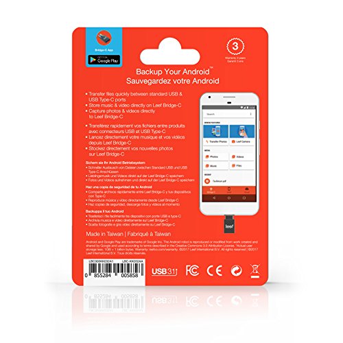 Leef Bridge-C 32GB, Espansione di Memoria per Smartphone Android con Doppio Connettore USB Tipo-A / Tipo-C, Custodia per il Trasporto Inclusa, Nero